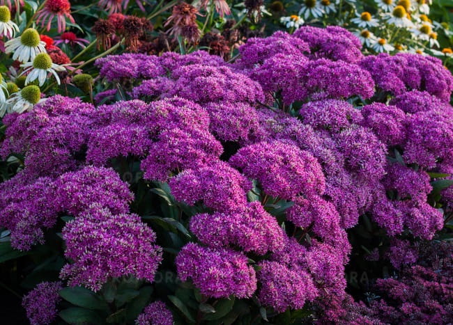 Na końcach łodyg o zielonym ulistnieniu, powstają duże, amarantowe kwiatostany, które przyciągają motyle.
